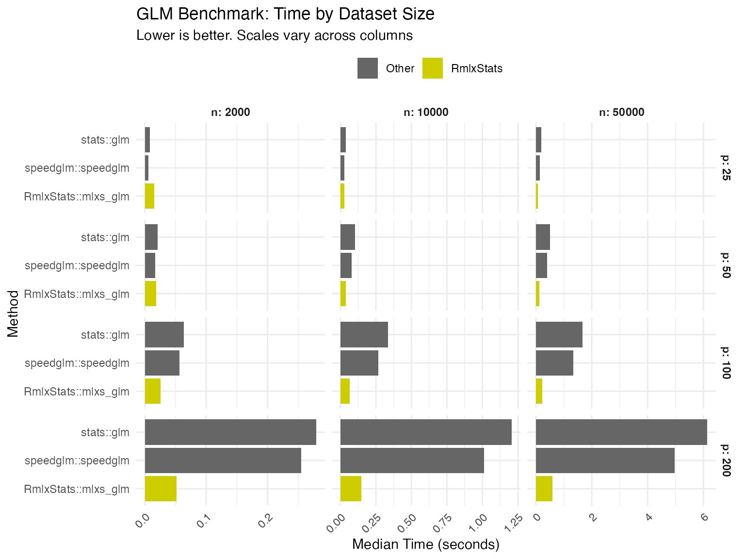 lm_df <- do.call(rbind, lm_results)GLM Benchmarks