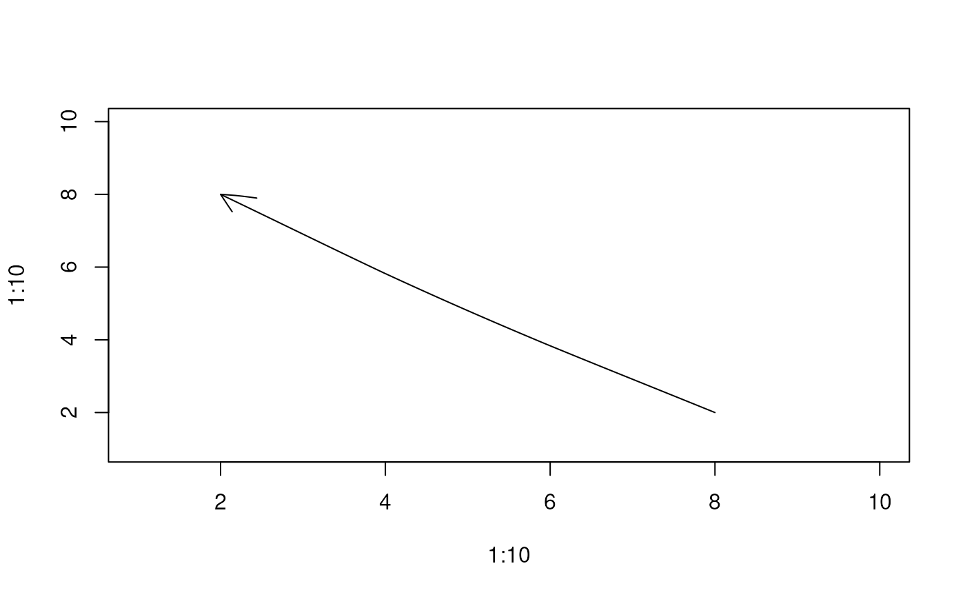 rough_arrows(x0, y0, x1, y1, length = 0.25, angle = 30, code = 2, hand = NULL)